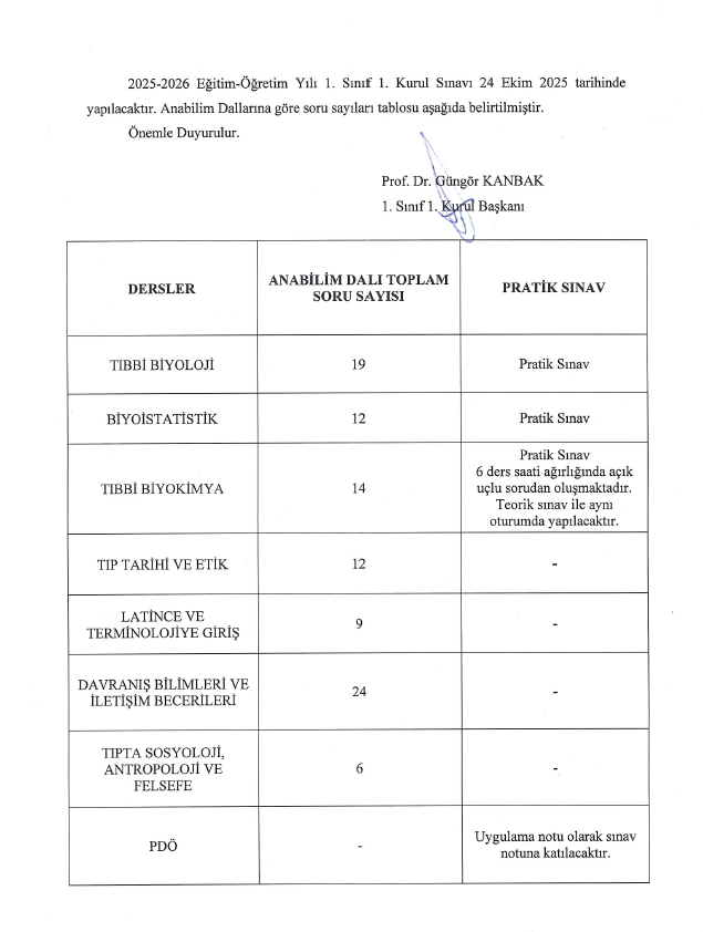 1.SINIF FİNAL SINAVI MUAF ÖĞRENCİ LİSTESİ