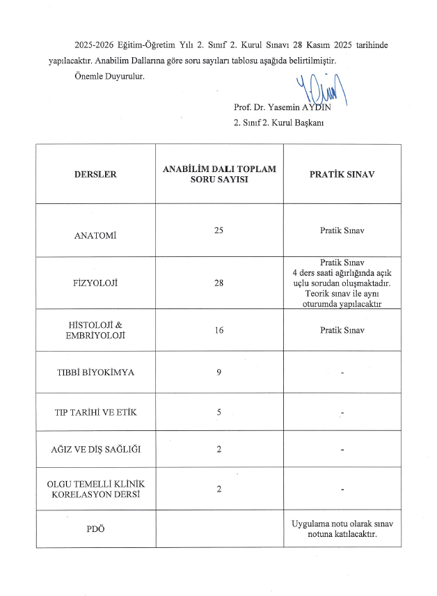 2.SINIF FİNAL SINAVINDAN MUAF OLANLAR