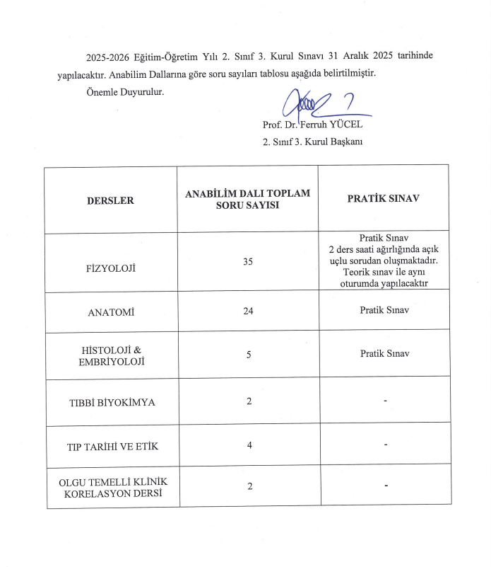 3.SINIF FİNAL SINAVINDAN MUAF OLANLAR