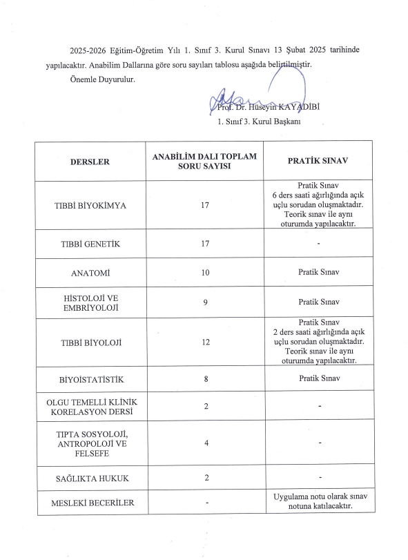 1.SINIF FİNAL SINAVINDAN MUAF OLANLAR